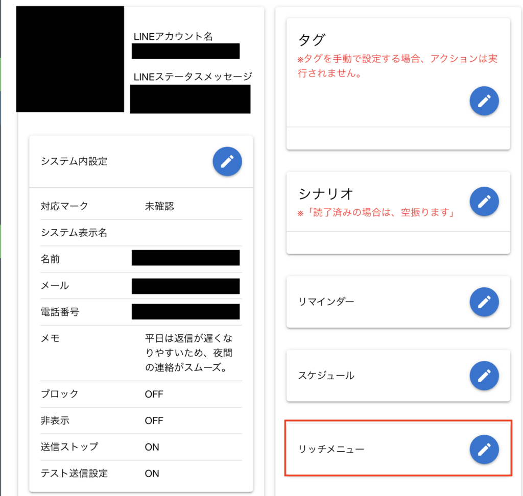 【リッチメニュー】欄の右側にある✏️(鉛筆マーク)をクリックし、