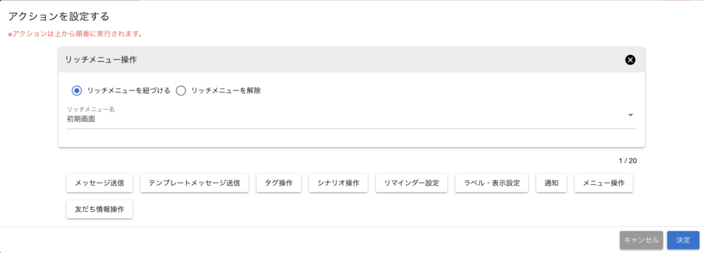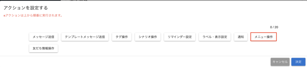 STEP2. アクションでリッチメニューを表示する
