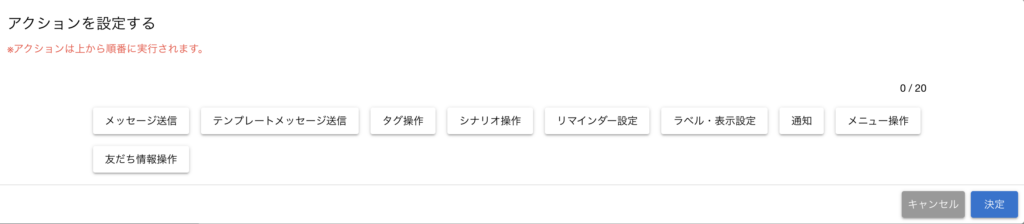 例えば「タグを付ける」「シナリオを開始する」「特定のリッチメニューを表示する」など、
