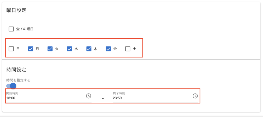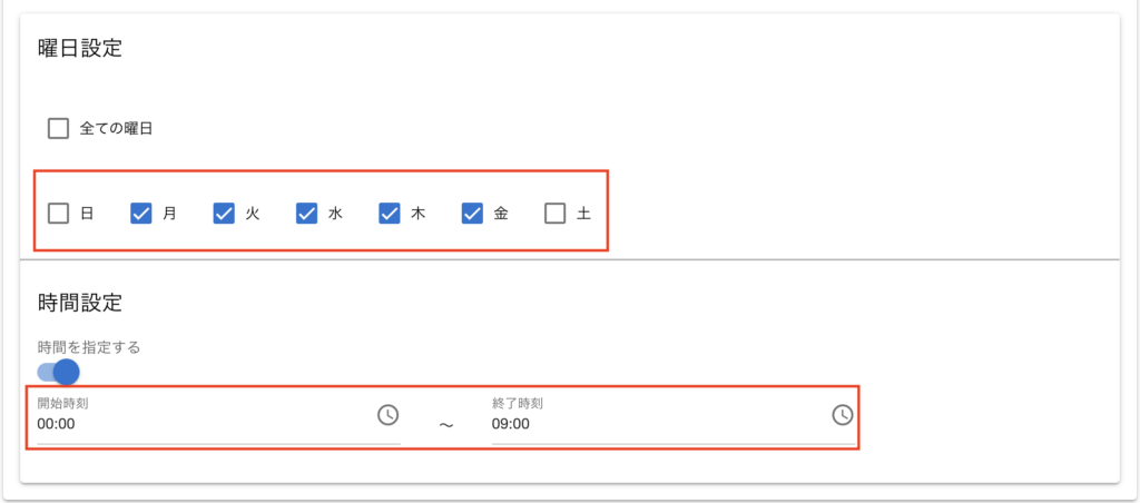 ※ 1つの自動応答では日付をまたぐ時間帯を指定できないため、
