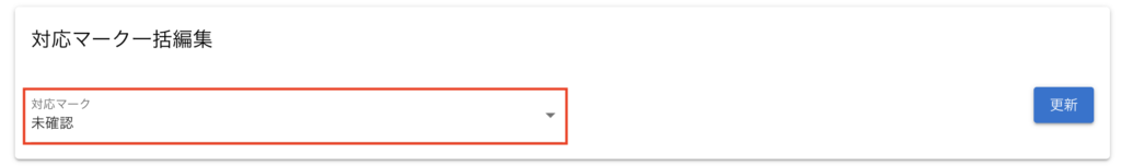 対応マーク一括編集メニューから「未確認」から「確認済み」に変更して「更新」ボタンをクリックします。