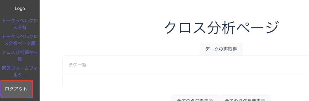 クロス分析のサイトからログアウトします。