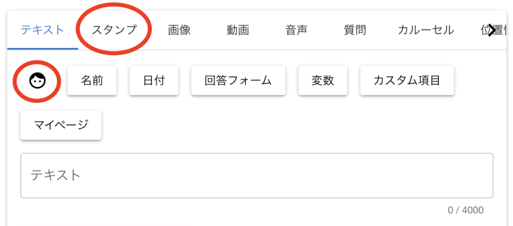 STEP2:【☺︎】マークまたは「スタンプ」を選択