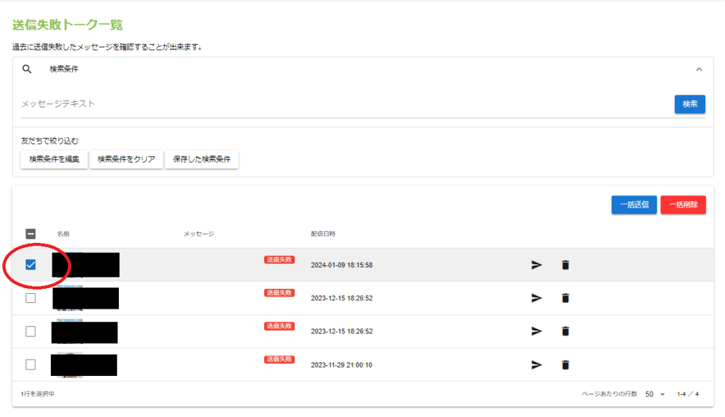 STEP1:送信に失敗したメッセージ一覧から、再送したい項目を選択します。