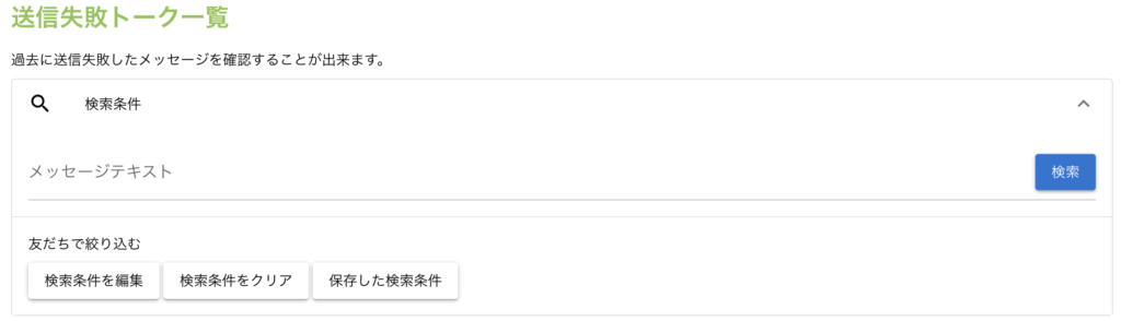 送信失敗リストでは、配信エラーとなったメッセージを一覧で確認し、