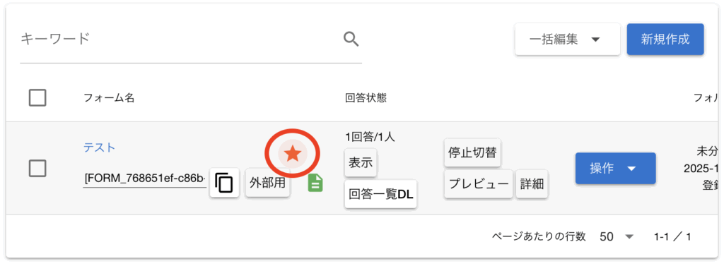 STEP2:表示したい回答フォーム名の横にある「☆」をクリックする