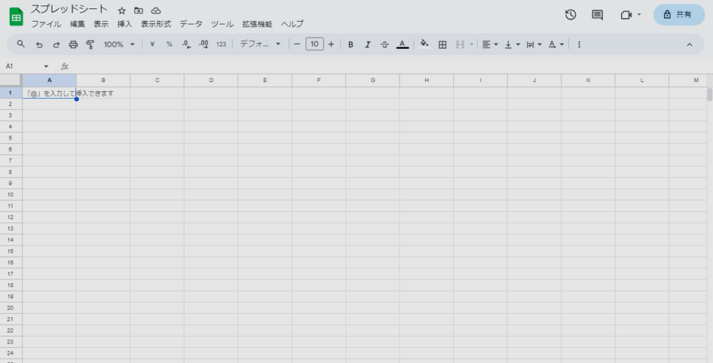 ログインが完了すると、自動的にスプレッドシートが作成されます。