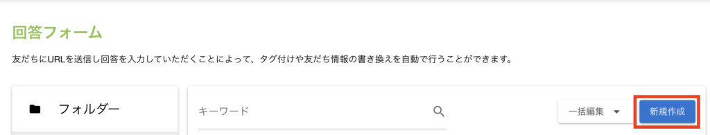 右上の「新規作成」をクリックして新しい回答フォームを作成します。