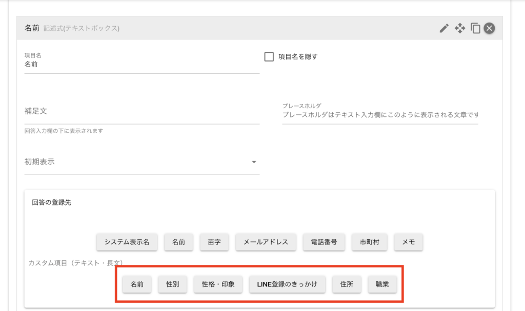 STEP3. 各質問項目に「カスタム項目との紐づけ」を設定