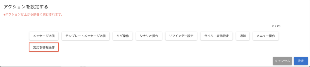 友だち情報欄に反映させる内容を設定し、「決定」をクリックして保存する。