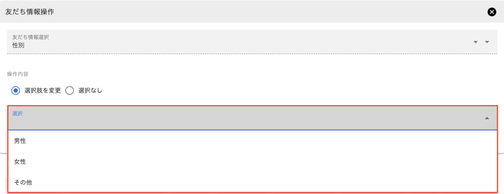 ラジオボタンの選択肢毎に友だち情報欄を登録する場合。