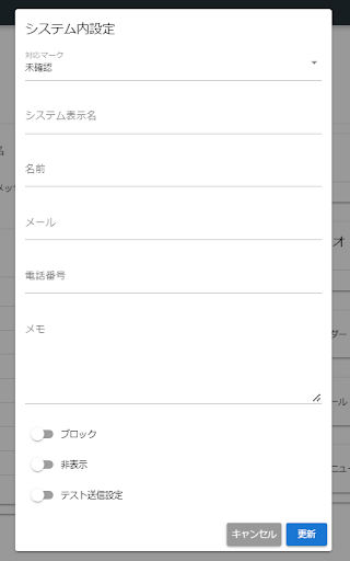 この画面から「ブロック」「非表示」「送信ストップ」などの内部設定を行うほか、