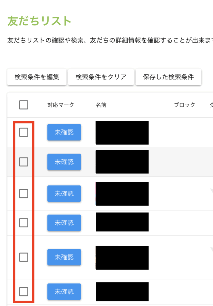 なにも条件を設定しない場合、画面に表示されている全ての友だちがエクスポート対象になります。