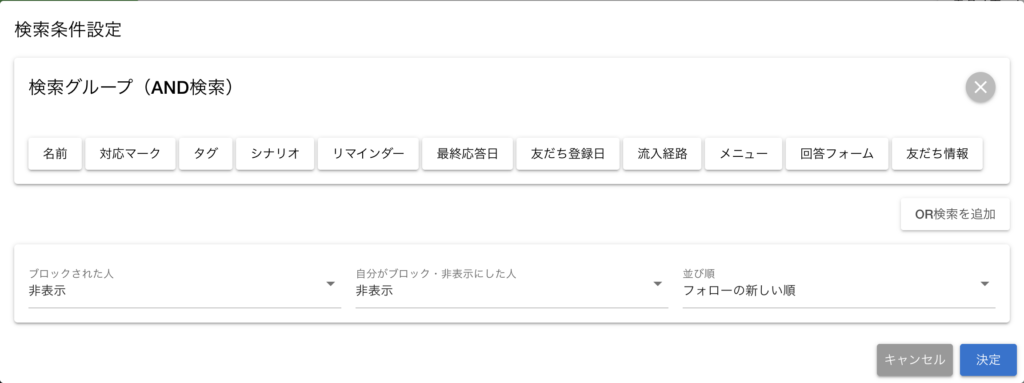 複数の条件を組み合わせて友だちを検索できます。