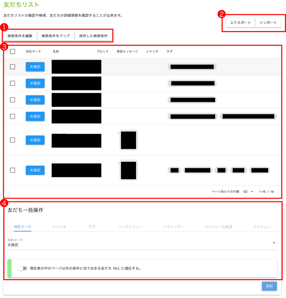 ④ 友だち一括操作エリア