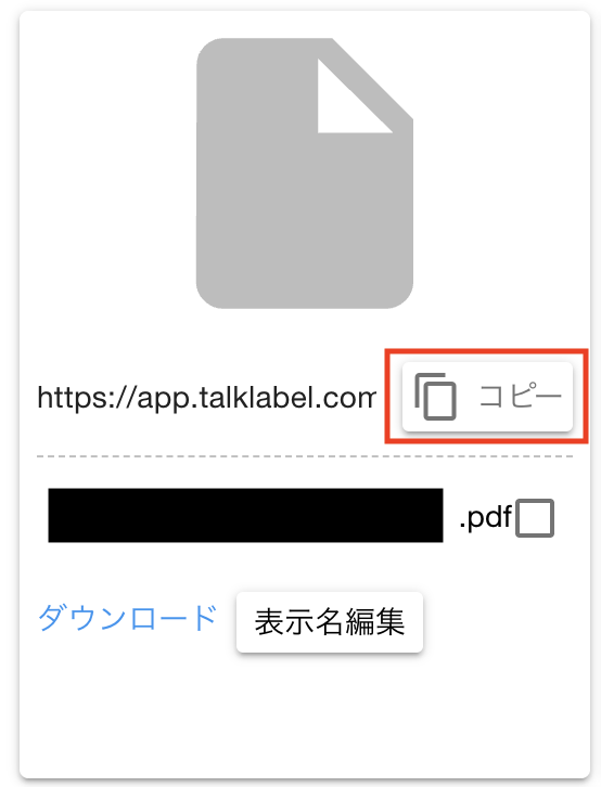 登録メディアにアップロードしたPDFは、発行されたURLをメッセージに記載して送信できます。