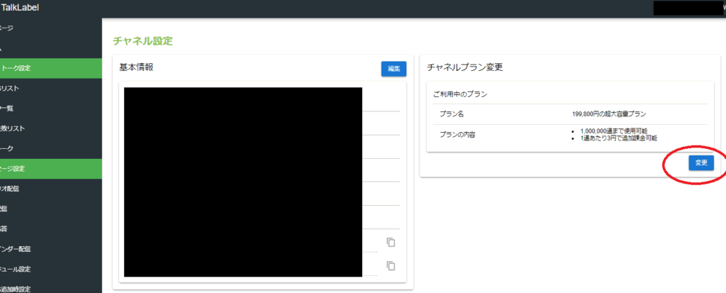 - 左メニューの【料金プラン】、または【チャネル設定】をクリックします。