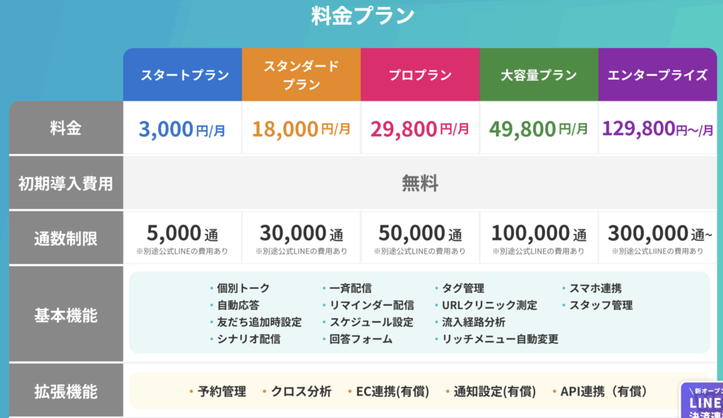各プランには、1か月あたりのメッセージ配信上限数が設定されています。