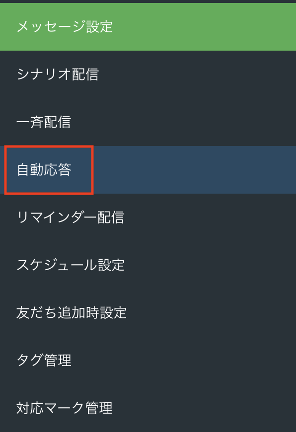 左側メニューから【自動応答】をクリックし、