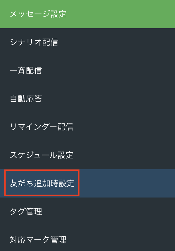 左側メニューから【友だち追加時設定】をクリックします。