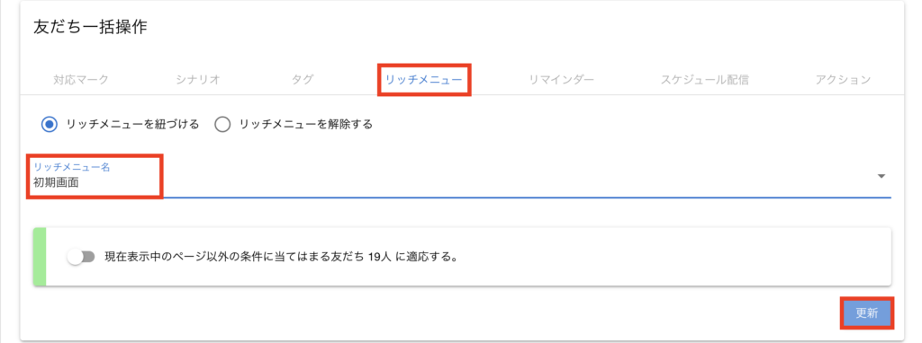 STEP3:友だち一括操作でリッチメニューを紐づける