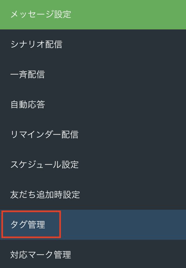 左側メニューから【タグ管理】をクリックします。