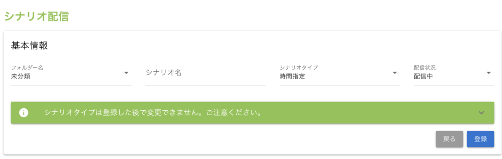 ON/OFFの切り替えで、配信後にシナリオを停止するかどうかを設定できます。