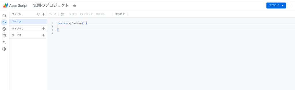 新しいタブでApps Scriptの画面が開きます。