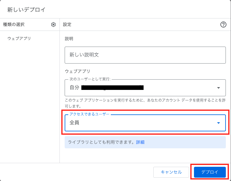 STEP4:デプロイ設定でウェブアプリを公開する