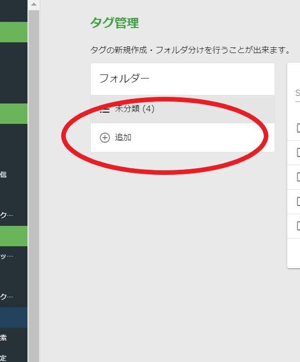 タグを種類別に管理したい場合は、[フォルダー]欄にある[⊕追加]をクリックしてタグフォルダを作成します。