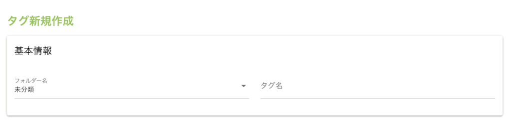 画面右上の[新規作成]をクリックし、基本情報の「タグ名」に任意の文字列を入力します。