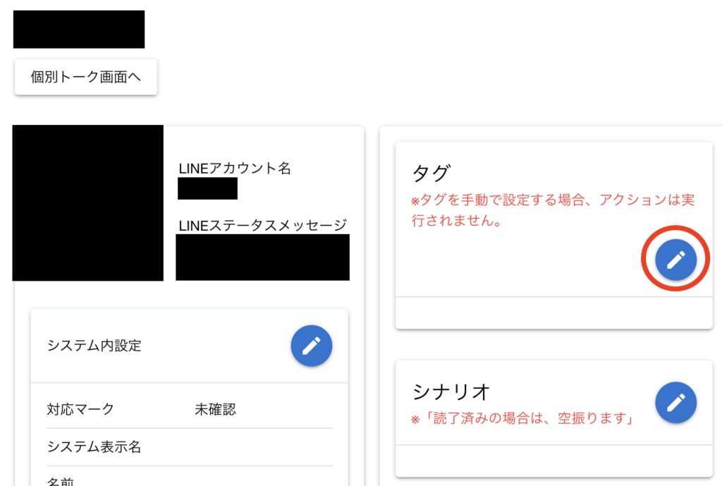 友だちの個人詳細ページを開くと、登録済みタグが表示されます。