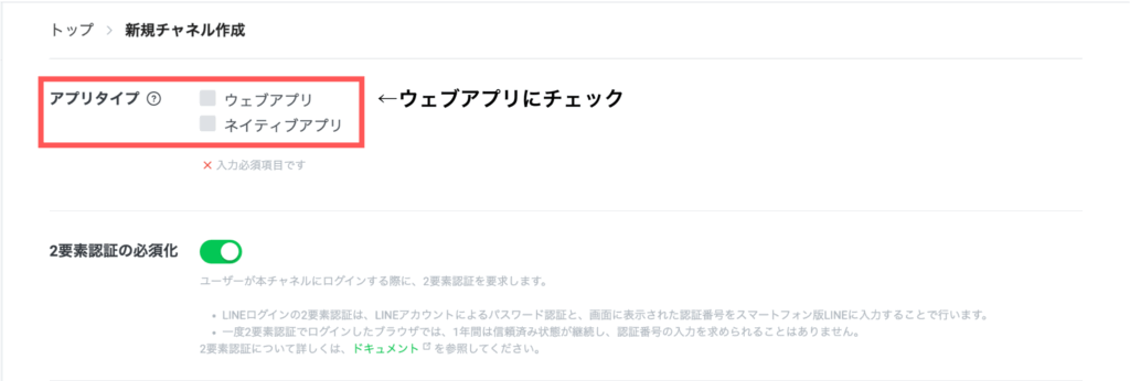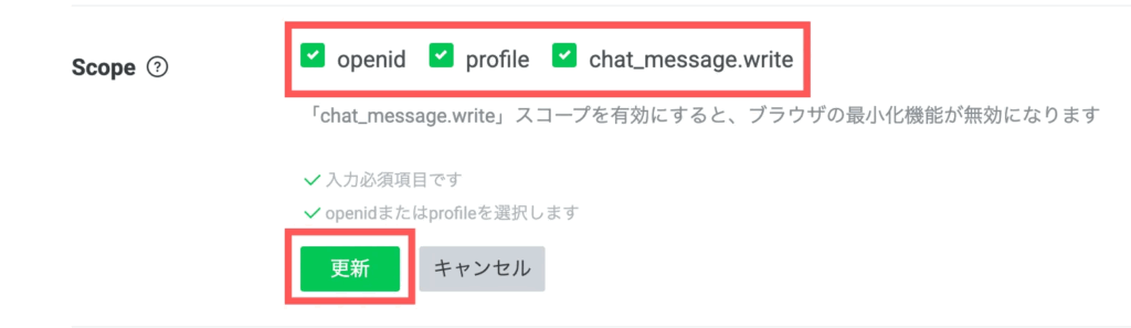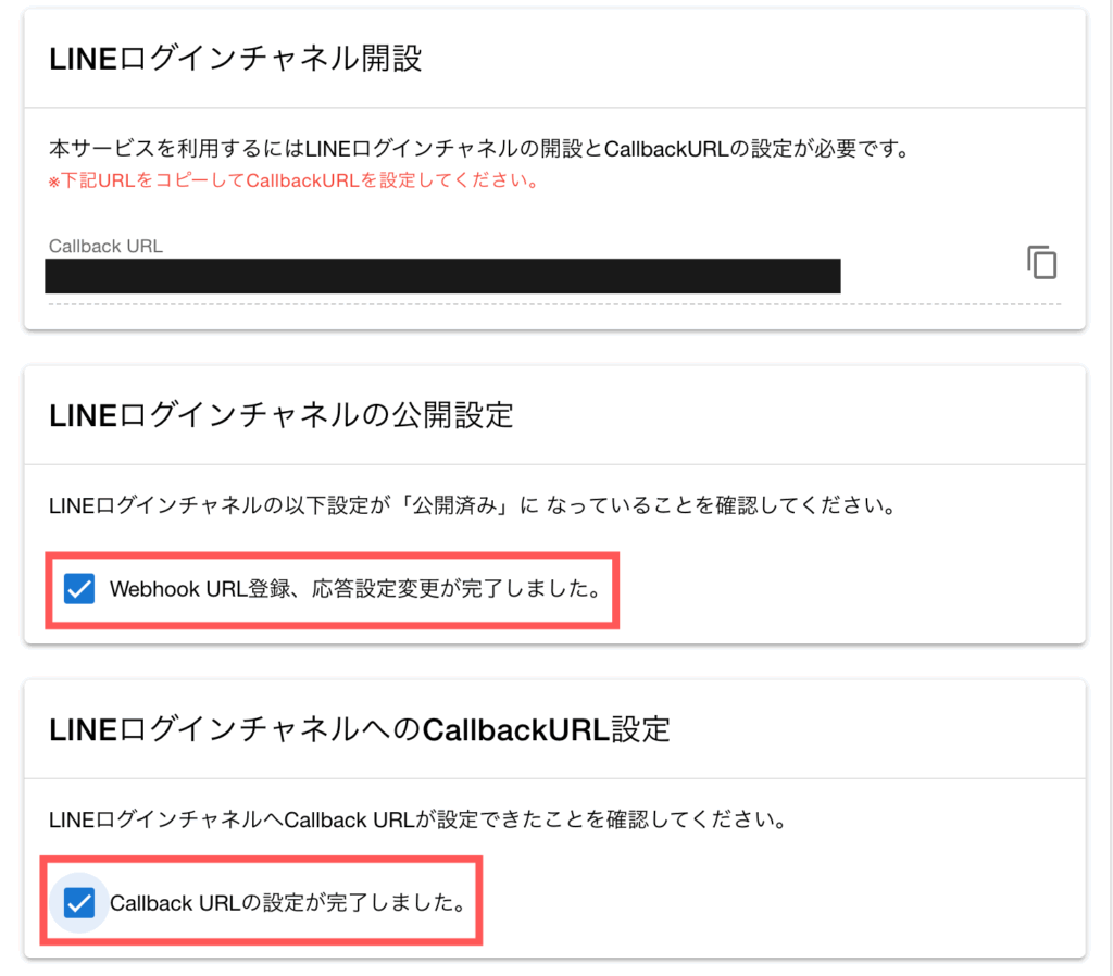 ⑤LINEログインチャネルの開設、CallbackURL設定が完了したら以下のようにチェックを入れてください。