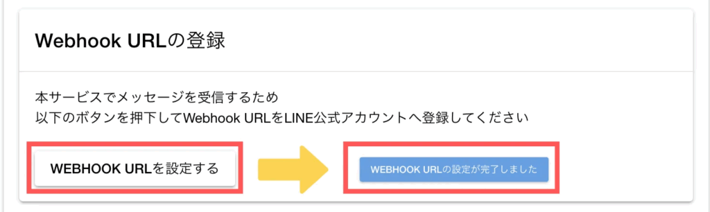 画像のように[WEBHOOK URLの設定が完了しました]と表示されていれば完了です。