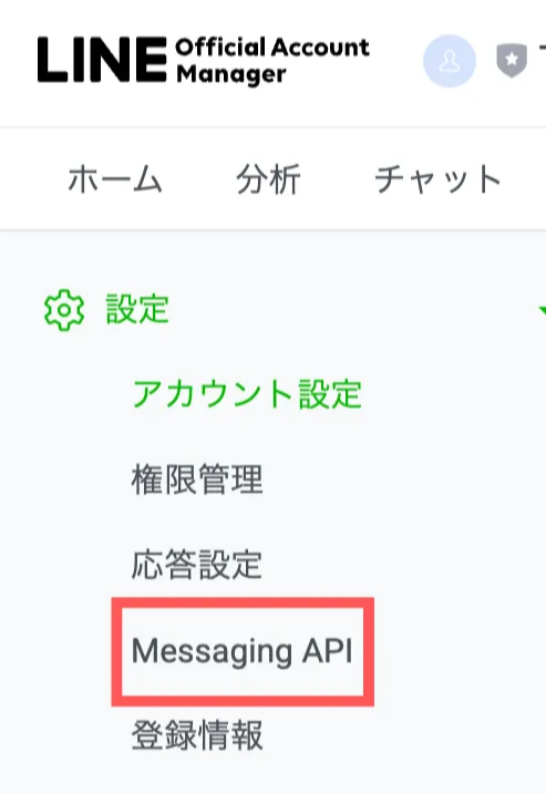 次にLINE公式アカウントのMessaging APIの初期設定に進みます。