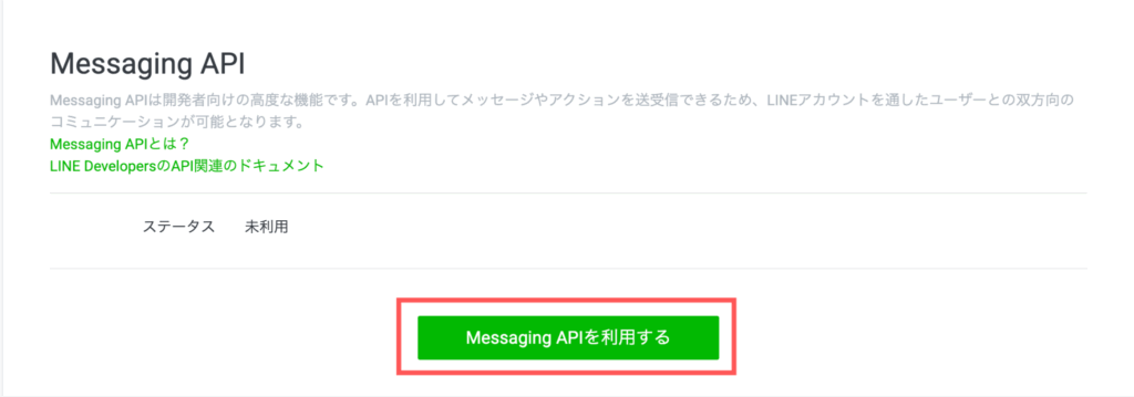 ③以下の画面から[Messaging APIを利用する]をクリックしてください。