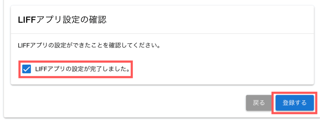④LIFFアプリの設定ができたらトークラベルの画面に戻りチェックボックスにチェックを入れて