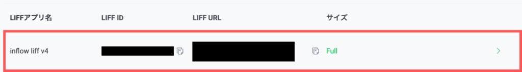①LINE Developersの画面からLIFFタブを選択し「inflow liff v4」をクリックします。