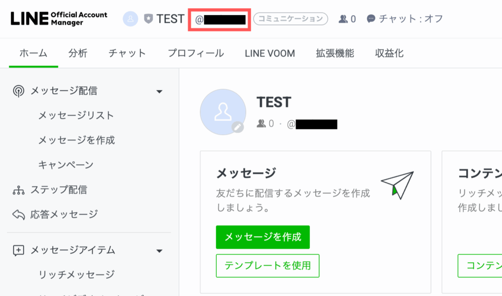 LINE Official Account ManagerからLINE公式アカウントIDをコピーしてください。