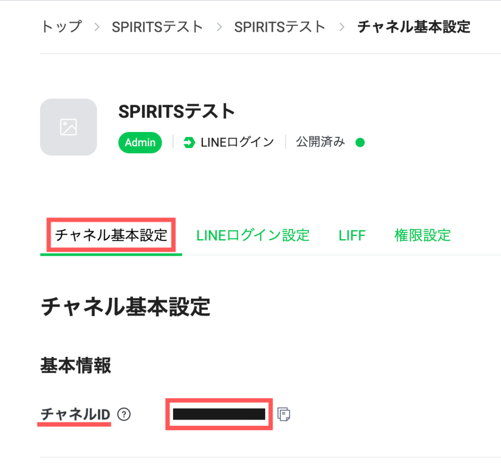 ①LINEログインチャネルIDとLINEログインチャネルSECRETを入力します