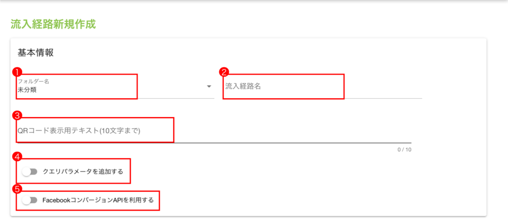 | 1.フォルダー名 | この流入経路を分類するフォルダーを選択します。 管理しやすくするため、用途ごとに分けておくと便利です。 |