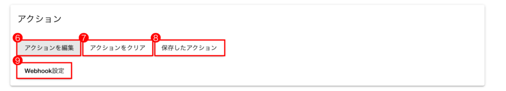 | 8.保存したアクション | 事前に保存しておいたテンプレートアクションを呼び出せます。 |