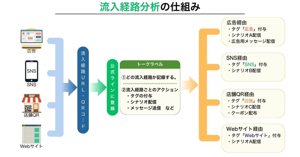 - どの広告・SNS・店舗・キャンペーンから友だち追加されたかを把握できる
