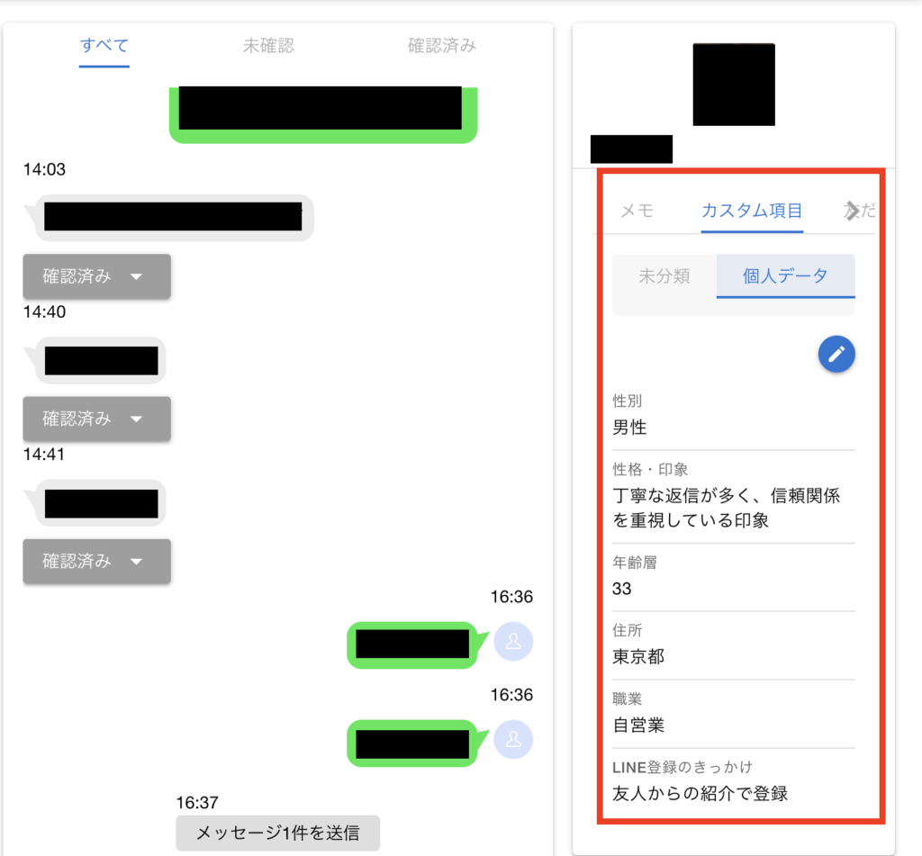 登録したカスタム項目は、個別トーク画面でも確認できるようになりました。