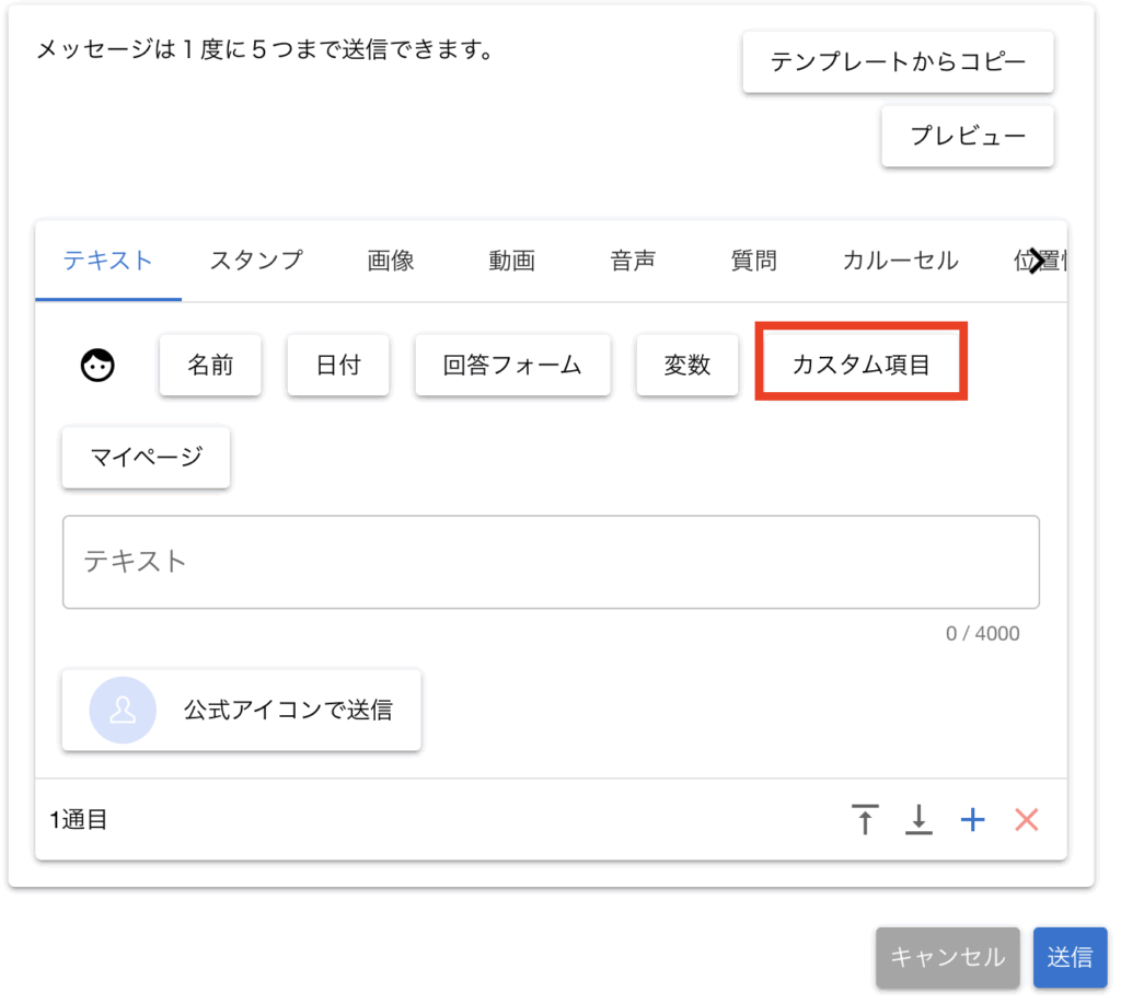 メッセージ作成時に、カスタム項目の値を本文へ差し込めるようになりました。